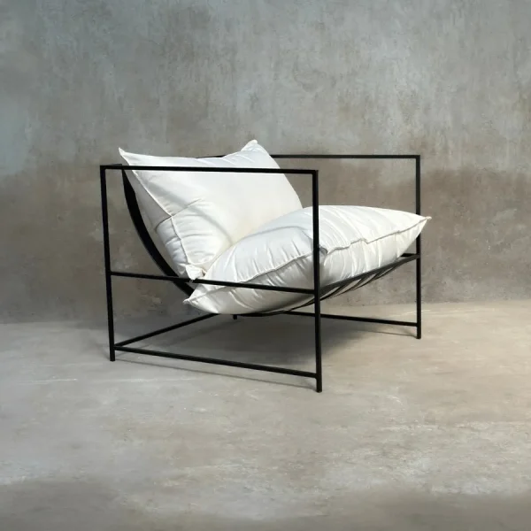 Sillón individual fabricado en acero con pintura electrostática color grafito. Incluye cojines impermeables, lavables y con protección UV. Ideal para exteriores. Hecho en Chile.