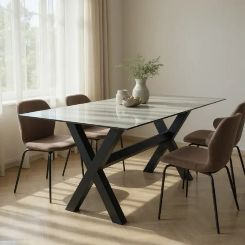 La Mesa Ruddiger es una propuesta moderna y funcional que destaca por su cubierta de vidrio. Esta transparencia genera una sensación de amplitud, permitiendo que el espacio fluya y la luz se proyecte de forma natural.